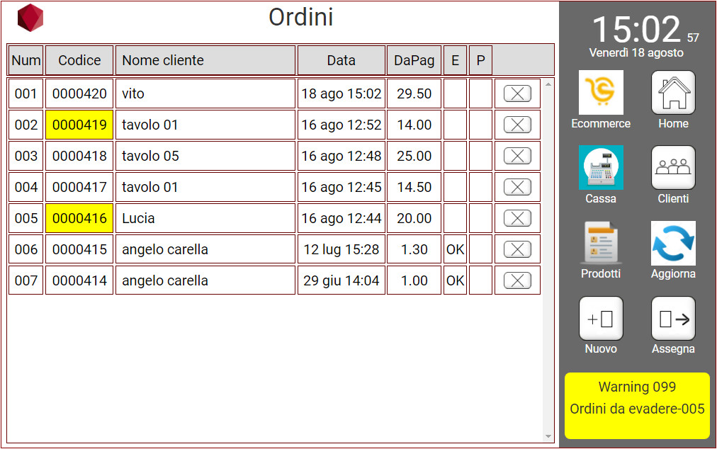 Chiudi Dettagli Ordini